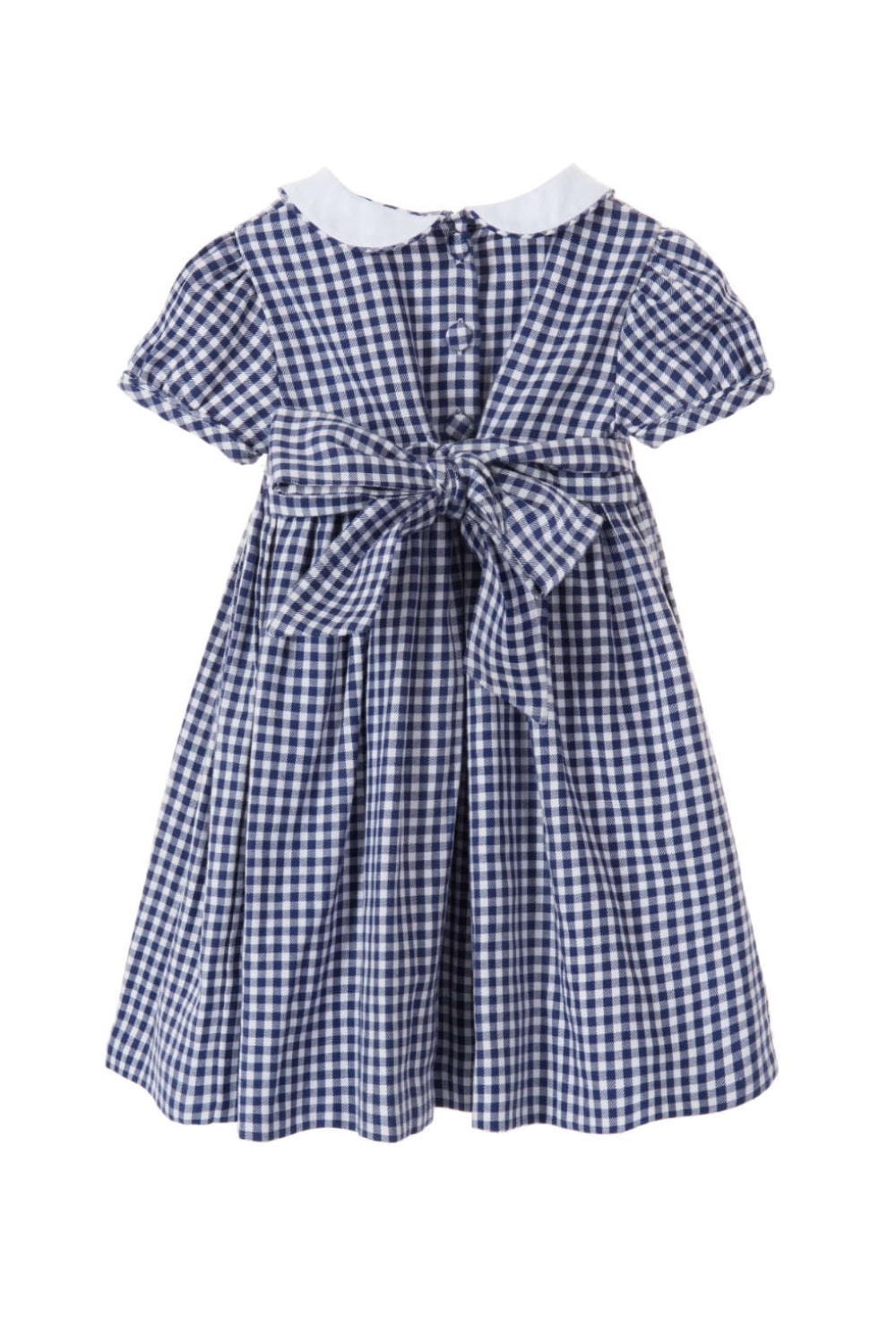 Navy vichy gingham made from extra soft brushed cotton is styled into the classic Annafie silhouette, with delicate puffed sleeves and a white peter pan collar. This dress is perfect for colder days as the cotton is soft and brushed.